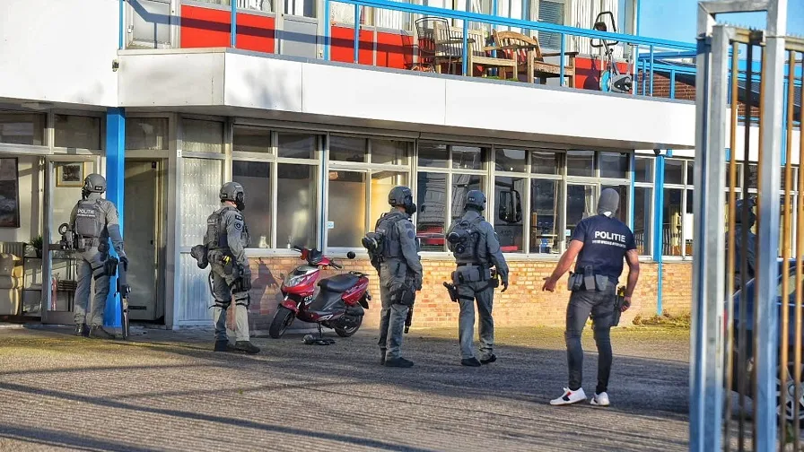 Een zwaarbewapend arrestatieteam is maandagavond een bedrijfspand aan de Van Gehrstraat in Rijen binnengevallen. De agenten droegen tijdens de inval gasmaskers.